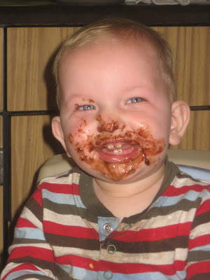 I love being a mother and today I am celebrating that I made it through one of the hardest days I've had in the last while. These are some cute pictures that we took of Joshua after giving him yet another chocolate chip cookie.